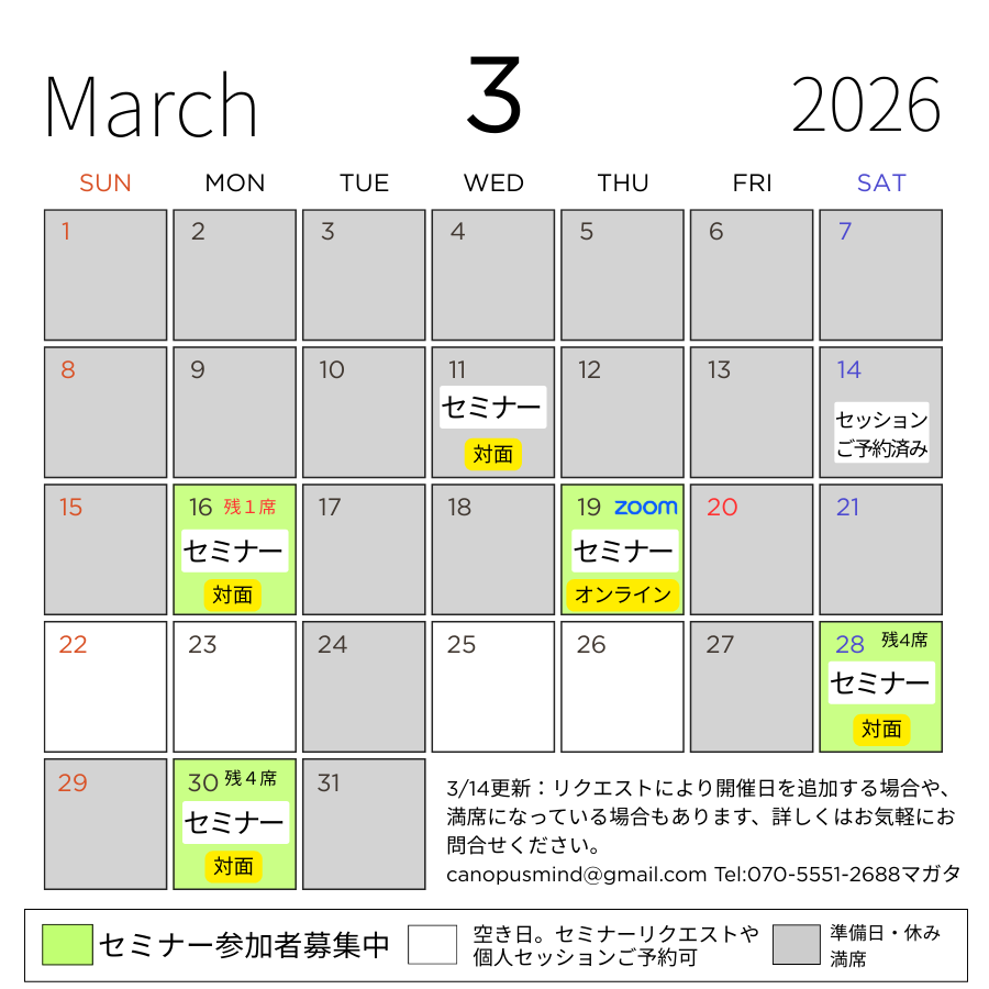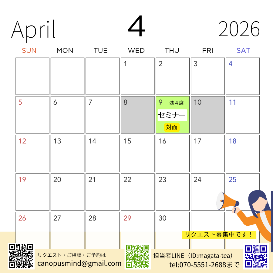 ※上記以外の日はリクエスト制/3名様以上で開催に。対面(大阪府枚方市)の他、オンライン(Zoom)開催リクエストも承ります。